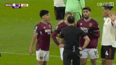 第83分钟,西汉姆联中场帕奎塔因不满主裁判对一次犯规的判罚,当面激烈抗议,主裁判出示黄牌警告,帕奎塔仍不依不饶继续争执,主裁判果断再掏黄牌,两黄变一红将其罚下。