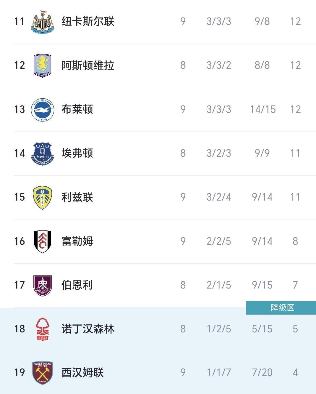 伯恩茅斯15分力压利物浦排名第五,而切尔西与热刺同积14分,已跌出欧战区。