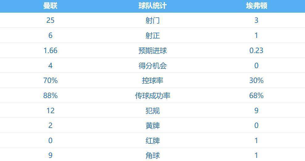 从数据看,曼联的控球率高达70%,射门次数以25-3形成碾压之势,射正数也以6-1领先。 然而埃弗顿门将皮克福德成为全场主角:他先后扑出布鲁诺·费尔南德斯的远射、齐尔克泽近距离头球吊射以及芒特的补射,单场贡献6次关键扑救,几乎以一己之力守住胜果。