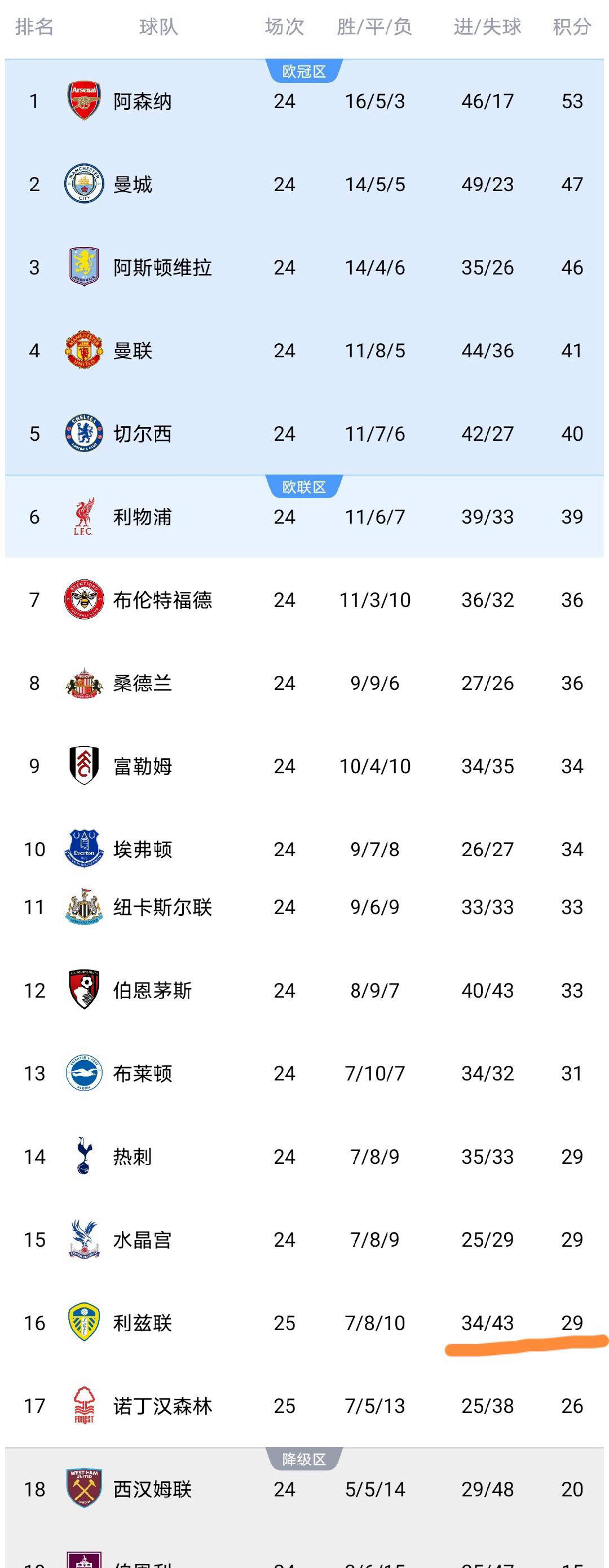此役过后,利兹联的积分提升至29分,暂列联赛第16位,领先降级区多达9分,极大增强了球队的保级信心和动力。相比之下,诺丁汉森林仍积26分,排名稍显危险,仅领先降级区6分,进一步体现出他们必须持续挣扎和拼搏,否则存在被西汉姆联反超的风险。
