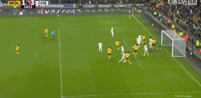 第54分钟,扳回一球!狼队开出角球,阿罗科达雷禁区内转身破门!狼队1-3切尔西!