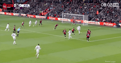比赛第22分钟,首开纪录!摩根-罗杰斯接队友传球右路劲射破门!阿斯顿维拉1-0伯恩茅斯!