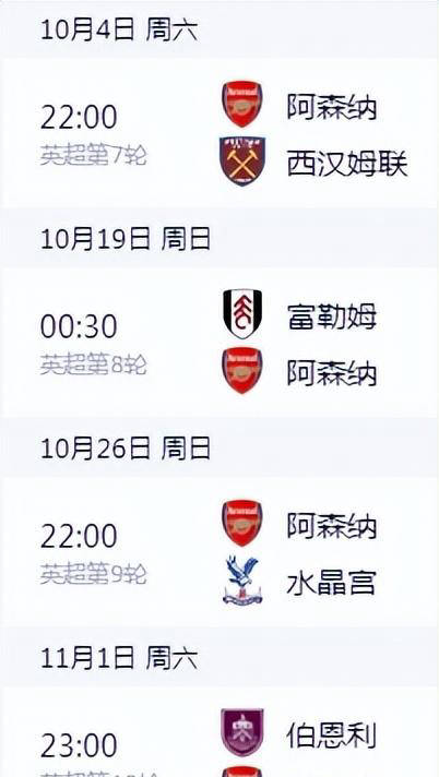 接下来,阿森纳将在主场迎战西汉姆联,然后客场对阵富勒姆,在主场迎战水晶宫,之后又要连续客场挑战两支新晋升的球队伯恩利和桑德兰。