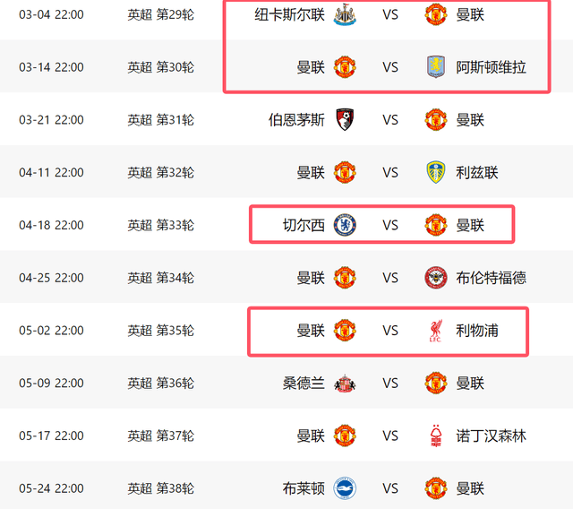 打完阿森纳,后面15轮比赛,曼联还将遇到纽卡斯尔(客场)、维拉(主场)、切尔西(客场)和利物浦(主场)4大强队,这是曼联最难踢的几场比赛,特别是与切尔西和利物浦的大战,对争四结果有重大影响。好在切尔西和利物浦届时可能都要分心欧冠和足总杯,因此曼联在联赛中以逸待劳,未必不能趁机拿下对手。