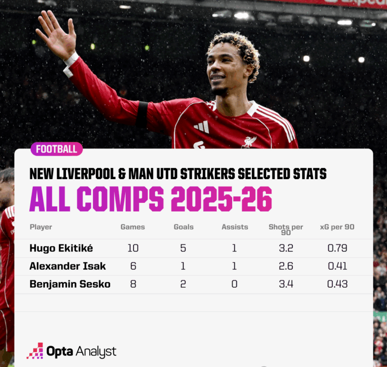 两家俱乐部在夏季都投入巨资,包括引进中锋。利物浦的埃基蒂克开局表现不错,但他们历经艰难从纽卡斯尔挖过来的伊萨克和曼联的谢什科却因为各种原因开局表现不佳。