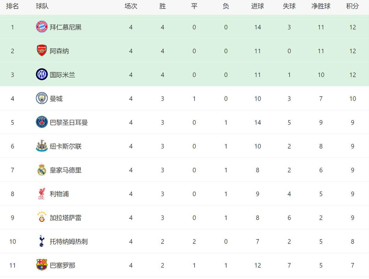 截至目前,欧冠前四轮已全部结束,英超整体表现十分强势。阿森纳、曼城、纽卡斯尔和利物浦四队稳坐前八席位,而热刺位列第10,切尔西排名第12,与前八球队只有微弱差距。在本赛季的欧冠比赛中,6支英超球队表现出色,有望实现全部晋级。