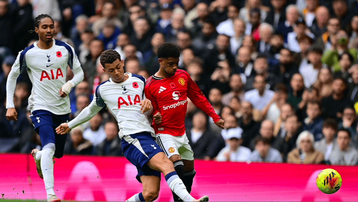 顶住了热刺的狂轰滥炸,第69分钟,阿玛德·迪亚洛送出精准长传,B费的停球世界级,但帕利尼亚迅速赶到,B费仓促出脚,放了高射炮。