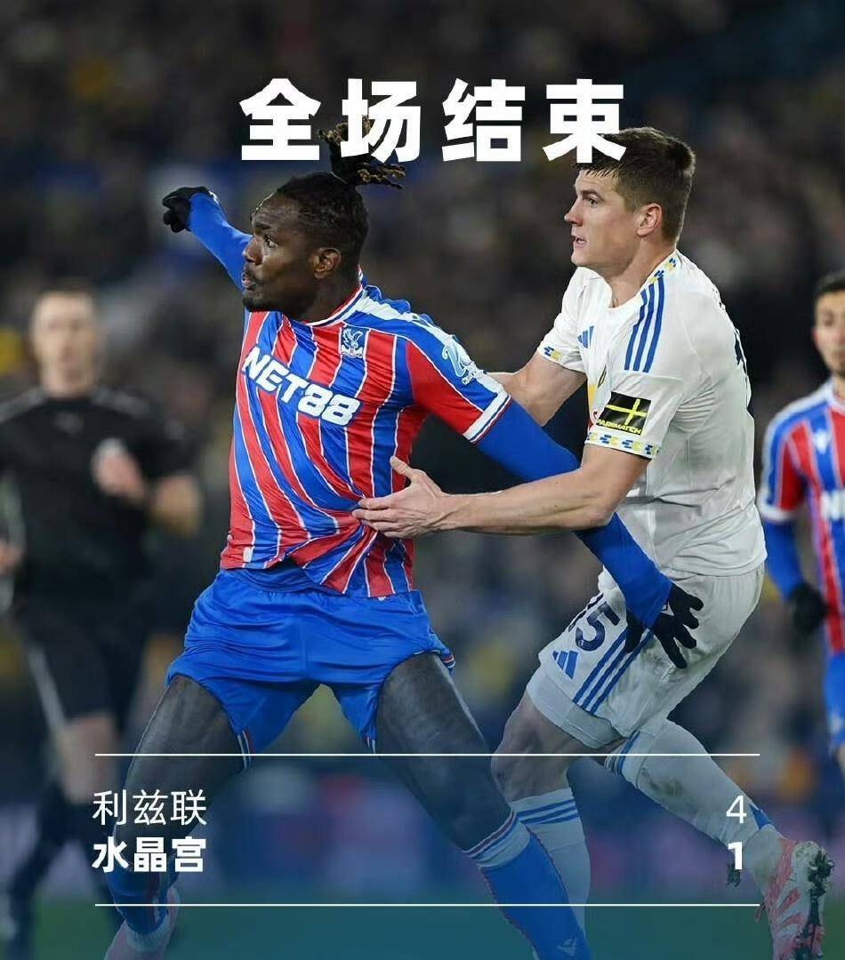 下半场,水晶宫依然浑浑噩噩。 第60分钟,利兹联利用角球混战,由阿姆帕杜门前垫射再下一城。 尽管水晶宫在第90分钟由德文尼点球扳回一城,但伤停补时最后时刻,斯塔赫一脚精彩的直接任意球破门,将比分最终锁定为4-1。 这场惨败终结了利兹联对阵水晶宫的两连败,也把水晶宫从云端直接踹了下来。