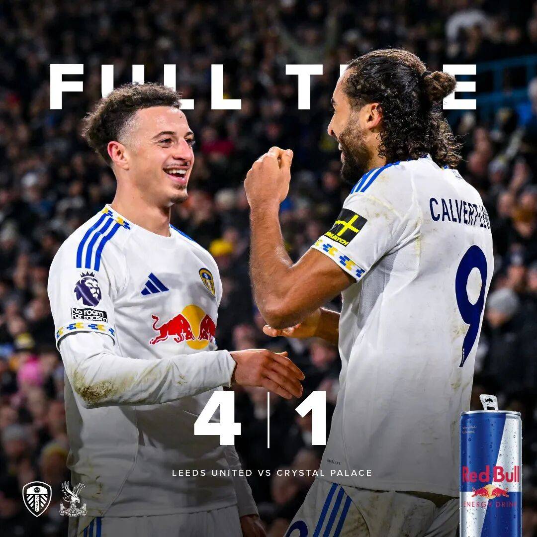 利兹联上轮英超主场4-1大胜水晶宫取得四轮不败,阿隆森取代田中碧进入首发阵容。上半场利兹联队长安帕杜在球场两侧两次主罚界外球帮助Dominic Calvert-Lewin梅开二度,下半场威尔士中场在本方的角球进攻中亲自破门得分。水晶宫Justin Devenny凭借乌切制造的点球扳回一城后,德国中场Anton Stach直接任意球破门,利兹联全场依靠四个定位球大胜足总杯卫冕冠军水晶宫。利兹联获胜后排名升至第十六,领先倒数第三的西汉姆联六分,初步摆脱保级威胁。利兹联在这四场英超中击败切尔西、战平利物浦,而且他们还在和曼城的下半场比赛中2-1击败对手。